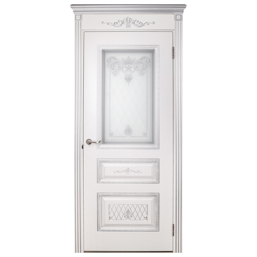 МЕЖКОМНАТНАЯ ДВЕРЬ UNIK ТРИО КОРОНА БЕЛАЯ ПАТИНА СЕРЕБРО СО СТЕКЛОМ