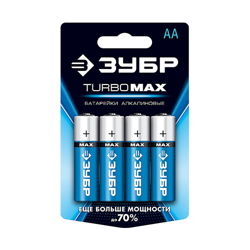 Щелочная батарейка 1.5 В, тип АА, 4 шт, ЗУБР Turbo-MAX 59206-4C_z01