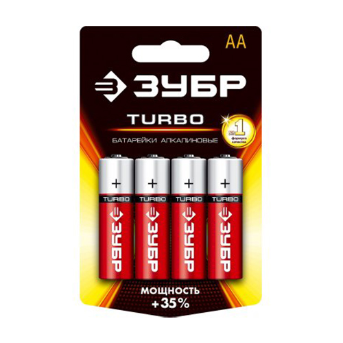 Щелочная батарейка 1.5 В, тип АА, 4 шт, ЗУБР Turbo 59213-4C_z01