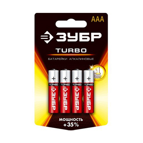 Щелочная батарейка 1.5 В, тип ААА, 4 шт, ЗУБР Turbo 59211-4C_z01