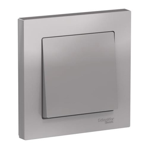 Выключатель Schneider Electric AtlasDesign (в сборе, цвет алюминий) 1-клавишный подходит для сетей 250 В, на ток 10 А.