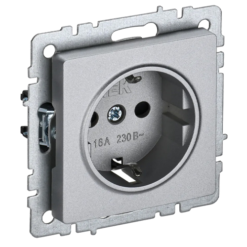BRITE Розетка 1-местная с заземлением с защитными шторками 16А РС14-1-0-БрА алюминий IEK