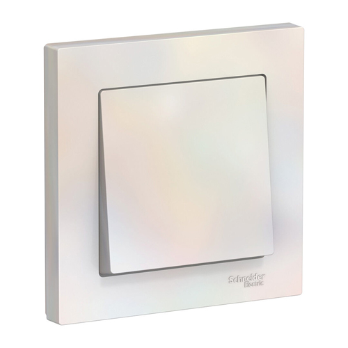 Выключатель производства компании Schneider Electric, с 1 клавишей и подсветкой. Выключатель выполнен в жемчужной расцветке.