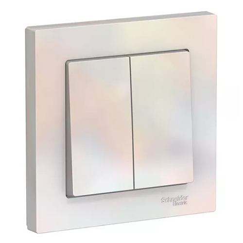 Выключатель Schneider Electric AtlasDesign (в сборе, цвет жемчуг) 2-клавишный подходит для сетей 250 В, на ток 10 А.
