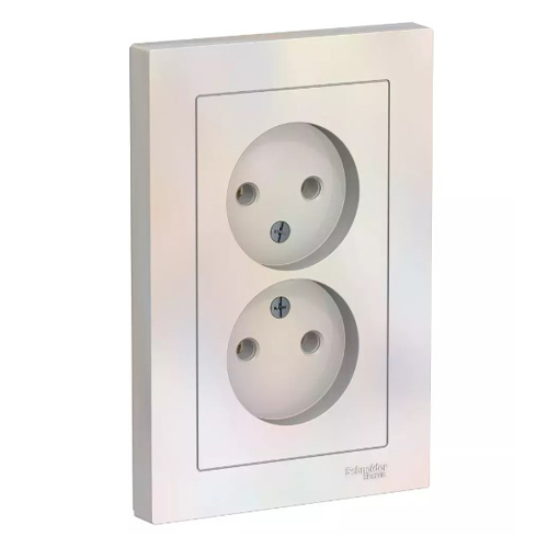 Розетка двойная Schneider Electric AtlasDesign (в сборе, цвет жемчуг) без заземления и без шторок подходит для сетей 250 В, на ток 16 А.