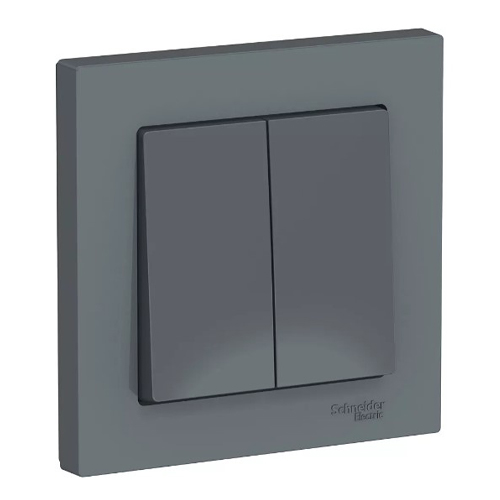 Выключатель Schneider Electric AtlasDesign (в сборе, цвет грифель) 2-клавишный подходит для сетей 250 В, на ток 10 А.