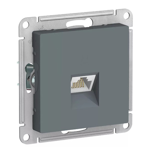 Механизм Schneider Electric AtlasDesign (цвет грифель) двойной розетки компьютерной с разъёмом RJ45 категория 5е предназначен для удобного и быстрого подключения вашего компьютера к локальной вычислительной сети.