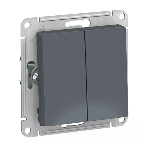 Механизм Schneider Electric AtlasDesign (цвет грифель) переключателя 2-клавишного подходит для сетей 250 В, на ток 10 А.