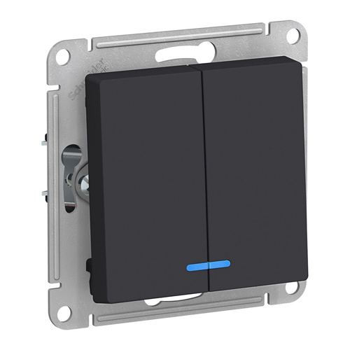 Механизм Schneider Electric AtlasDesign (цвет карбон) выключателя 2-клавишного c подсветкой подходит для сетей 250 В, на ток 10 А.