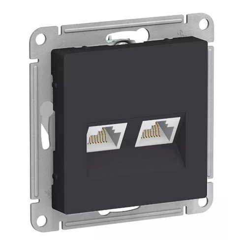 Механизм Schneider Electric AtlasDesign (цвет карбон) двойной розетки компьютерной с разъёмом RJ45 категория 5е предназначен для удобного и быстрого подключения вашего компьютера к локальной вычислительной сети.