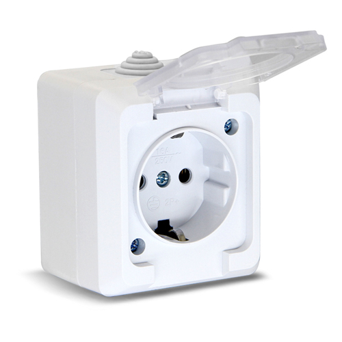 - Розетка с заземлением открытой установки с прозрачной крышкой TERRA