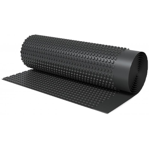 Профилированная мембрана применяется для отведения влаги с инверсионных кровель и вертикальных конструкций фундамента, а также при устройстве отмосток и пешеходных дорожек.