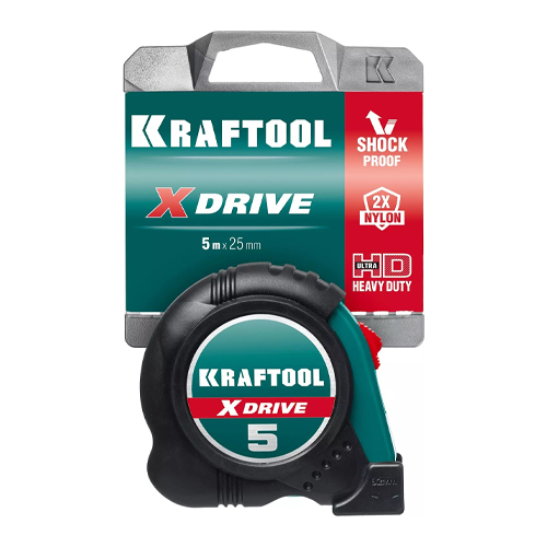 KRAFTOOL X-Drive 5м /25мм рулетка с ударостойким обрезиненным корпусом