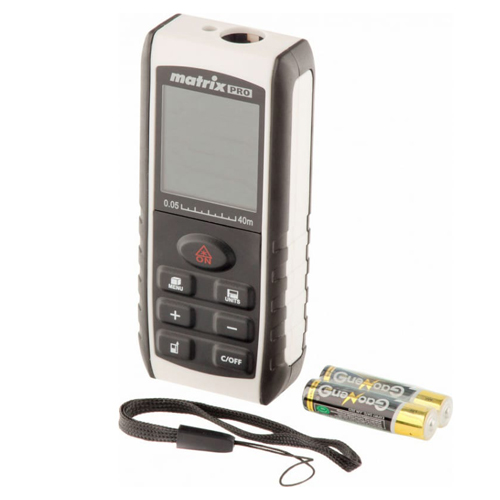 Лазерный дальномер с электронным угломером Matrix LD-40 38015 используется для измерения линейных расстояний и углов, вычисления площадей и объемов.