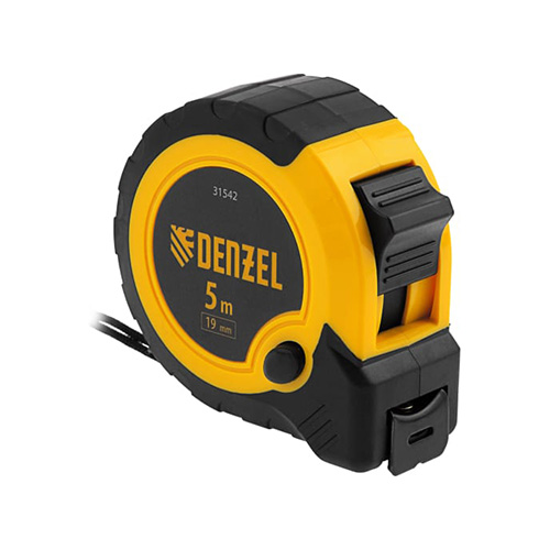 Рулетка Denzel 5 м, 19 мм, двухкомпонентный корпус, кнопка-пауза 31542