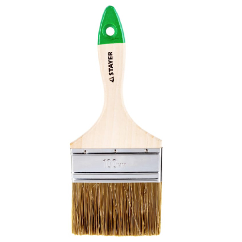 Плоская кисть STAYER LASUR-STANDART 01031-100 используется для работы с высокотекучими лакокрасочными материалами такими, как пропитки и морилки. Размер кисти составляет 100 мм. Кисть имеет повышенную износоустойчивость и сочетает в себе все преимущества смешанной (искусственной и натуральной) щетины. Рукоятка изготовлена из древесины и имеет специальное отверстие для удобства хранения кисти