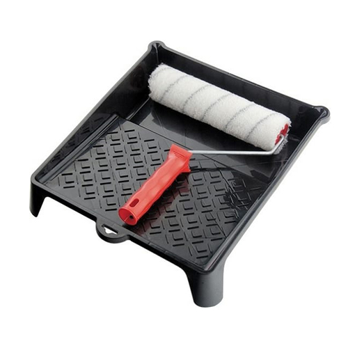 В комплект входит валик с шубкой из полиакрила и пластиковая кювета, конструкция которой позволяет экономно расходовать материалы при покраске.