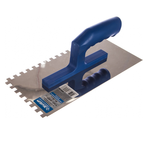 Зубчатая гладилка ЗУБР 0804-08- ручной инструмент, применяемый при строительных работах. При помощи гладилки удобно наносить и разравнивать различные растворы и смеси. Для комфортной работы инструмент оснащен удобной пластмассовой рукояткой.