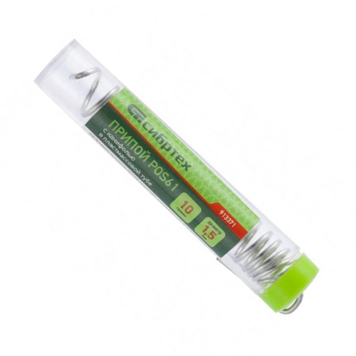 Припой с канифолью, D1,5 мм Сибртех 913371 (10г, POS61, в пластмассовой тубе)