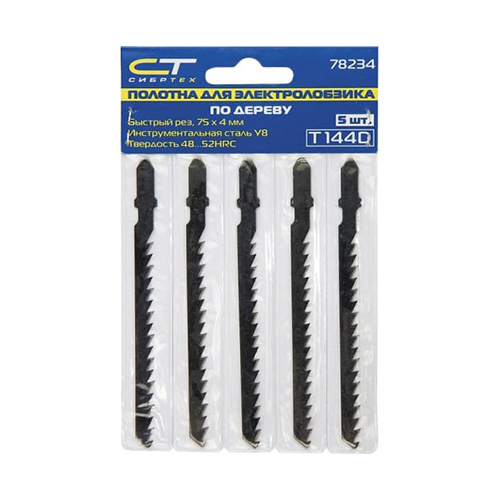 Полотна для электролобзика по дереву, 5 шт. T101BR, 75 х 2,5мм, обр. зуб СИБРТЕХ 78233