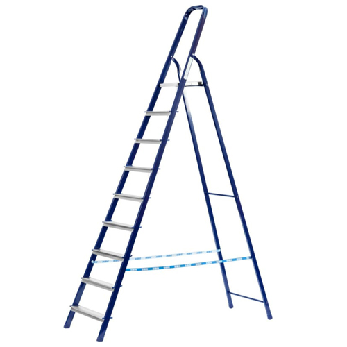 Стальная лестница-стремянка СИБИН10 ступеней 38803-10 с эргономичной дугой безопасности отличается удобством при подъёме и спуске.