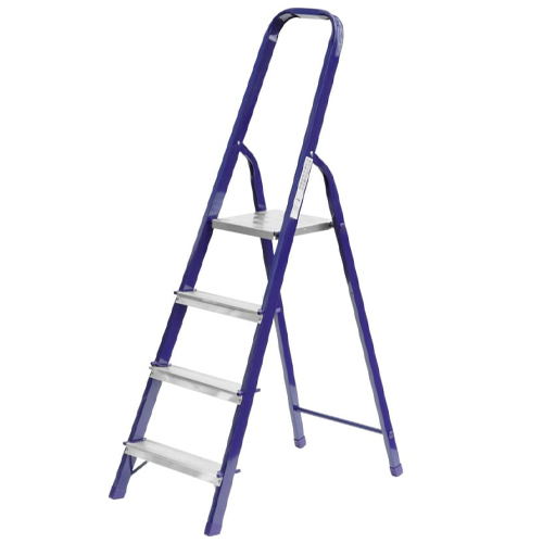Стальная лестница-стремянка СИБИН 4 ступени 38803-04 с эргономичной дугой безопасности отличается удобством при подъёме и спуске.