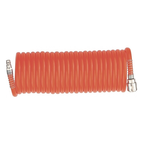 Шланг спиральный воздушный изготовлен из нейлона, стойкого к агрессивным средам. Оснащен быстросъемными соединениями с антикоррозийным покрытием. Используется для соединения компрессора с различными насадками.