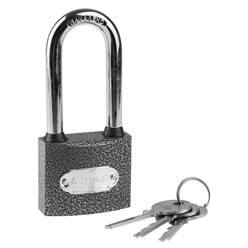 Замок ЗУБР "Мастер" навесной, металлический корпус, удлиненная закаленная дужка, 50мм