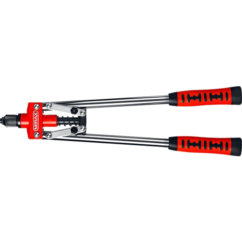 - Двуручный заклепочник MIRAX 420 мм, 2.4 - 4.8 мм 31034_z01 имеет двухрычажную конструкцию, что позволяет прилагать меньше усилий, благодаря чему снижается утомляемость во время длительной работы