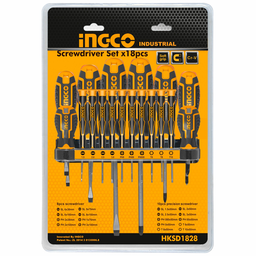 Универсальный набор отверток 18 шт INGCO HKSD1828 предназначен для работ с крепежом. Имеет в комплекте 8 отверток и 10 прецизионных отверток с разным шлицем для точных работ. Рабочие части отверток выполнены из хромованадиевой стали. Рукоятки выполнены из двухкомпонентного материала.