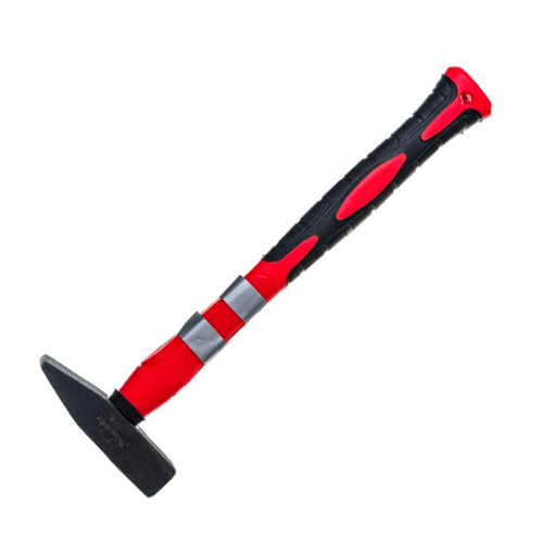 Рабочая часть инструмента отфрезерована, отшлифована, имеет черное лакокрасочное покрытие и надежно зафиксирована на рукоятке с помощью специального эпоксидного клея. Твердость бойка – части головки, принимающей на себя максимальные нагрузки, составляет 50–55 HRc на глубине до 3 мм.Фибергласовая обрезиненная рукоятка эффективно гасит колебания, возникающие при ударе.Головка молотка имеет селективную закалку.