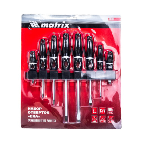 Набор отверток Matrix «Era» 13380 из 8 шт., из стали CrV, с 3-компонентными рукоятками, используется для закручивания и откручивания резьбовых крепежей со шлицами PH и SL. При этом направлять отвертку с насаженным крепежом можно одной рукой, поскольку рабочая часть каждой отвертки намагничена. Набор рекомендован для профессионального применения и будет полезен во время ремонта оборудования и бытовой техники, а также при сборке мебели.