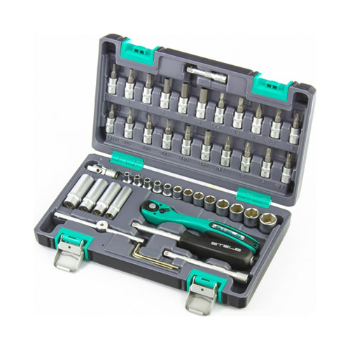 Набор инструмента STELS 14099 разработаны специально для автолюбителей и центров технического обслуживания. Каждый этап производства контролируется в соответствии с международными стандартами. Набор укомплектован масло и бензостойкой двухкомпонентной трещеткой. Головки и комбинированные ключи изготовлены из хромованадиевой стали, придающей инструменту исключительную твердость в сочетании с легкостью. Биты, биты-вставки и отвёртки производятся из стали S2, улучшающей свойства инструмента. Все наборы упакованы в кейс, изготовленный из жесткого противоударного пластика, с металлическими застёжками. Наборы инструмента STELS пригодятся вам не только в автомобиле. С их помощью можно проводить бытовой ремонт дома и на даче, ремонт бытовых конструкций и садовой техники.