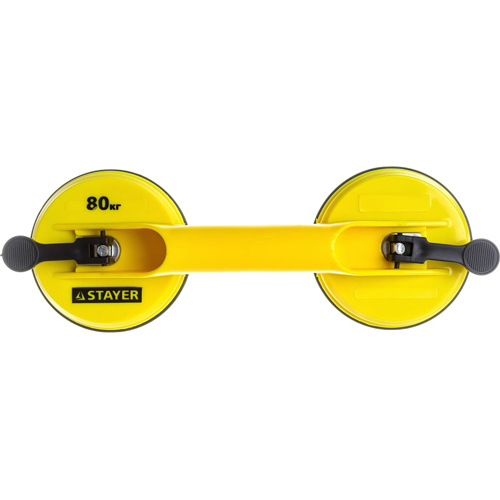 Двойной пластмассовый стеклодомкрат STAYER MASTER MAXLift 80кг 33718-2 - это специальное приспособление, которое используют при транспортировке стекол, зеркал и других подобных изделий, а также заготовок с гладкой поверхностью. Резиновое нескользящее основание прочно фиксируется на предмете по вакуумному принципу и поднимается посредством двух эргономичных рукояткой. Несмотря на малый вес и небольшие размеры, данная модель способна поднимать и удерживать груз весом до 80 кг.