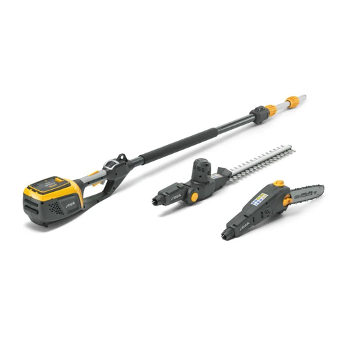 Чтобы добраться до высоких живых изгородей и веток, этот садовый многофункциональный инструмент оснащен 65-сантиметровой телескопической штангой, что позволяет ножницам для живой изгороди работать на высоте до 4,30 м, а высоторезу — до 4 м. А высокопроизводительная цепь на шине сводит отдачу к минимуму.