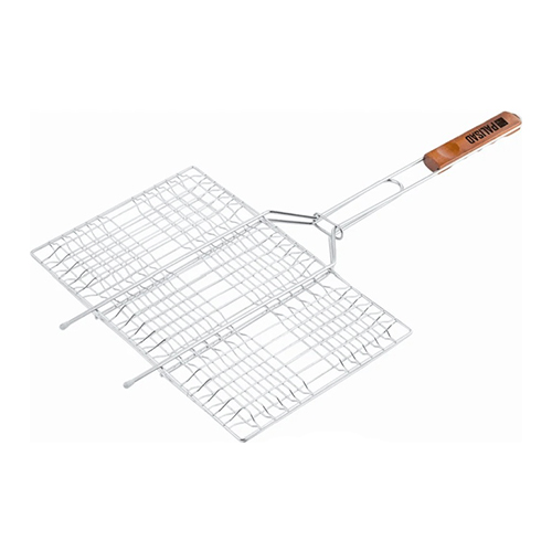 Решетка-гриль предназначена для приготовления мяса, рыбы, овощей над углями на открытом воздухе. Особая конструкция (зазоры между плоскостями) предусматривает приготовления продуктов целиком, сохраняя их сочными. Увеличенные опорные стержни обеспечивают устойчивое положение на мангале или барбекю и позволяют задействовать всю рабочую поверхность.