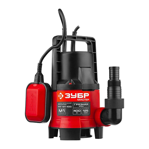 Насос дренажный погружной для грязной воды ЗУБР НПГ-М1-400, МАСТЕР, М1 (d частиц до 35 мм), 400 Вт, пропускная способность 125 л/мин, напор 5 м, с поплавком