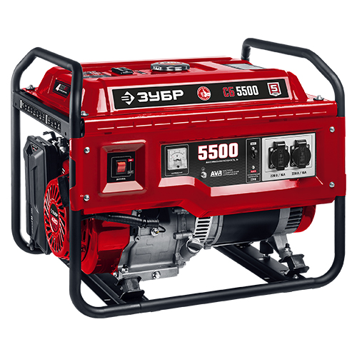 Бензиновый электрогенератор ЗУБР СБ-5500, предназначен для обеспечения электрической энергией потребителей в отсутствии электрической сети, а также для использования в качестве резервного или аварийного источника электрической энергии. Мощный генератор, который пригодится не только в загородном доме, но и в мастерской, и на строительной площадке, и вообще везде, где нет стационарного электричества, но нужно иметь работающую технику и инструмент. Высокое качество выходной энергии позволяет запитывать даже требовательную электронную технику. Дополнительная розетка увеличенной мощности для подключения таких потребителей, как нагреватели, калориферы, осветительная техника или несколько потребителей одновременно. Розетка 220В увеличенной мощности для подключения наиболее мощных потребителей расширяет возможности использования генератора.
