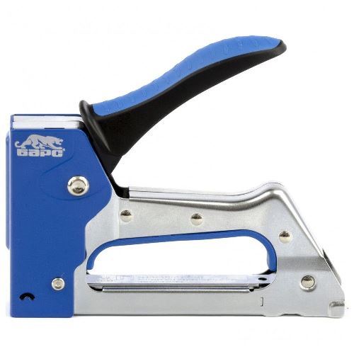 Металлический степлер Барс 40002 с двухкомпонентной рукояткой, для скоб типа 53 размером 6-10 мм, используется для сборки и обивки мебели, фиксации изоляционных материалов, а также других монтажных и отделочных работ. Позволяет быстро соединять с деревянным основанием листовые материалы из ДВП, ДСП, картона, оргалита, фанеры, пленки ПВХ. Благодаря рессорному ударному механизму инструмент не требует от оператора значительных усилий, поэтому подходит для длительной работы.