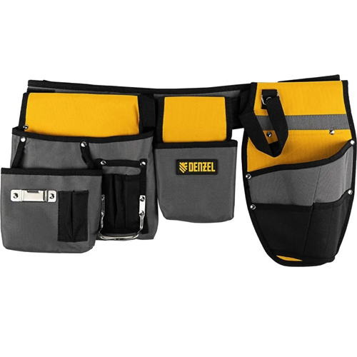 Пояс монтажника Denzel сумки поясные, кобура для шуруповерта 90291 предназначен для переноски ручного инструмента, необходимого при проведении монтажных, электромонтажных, слесарных и других видов работ.