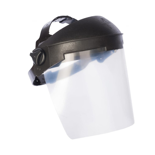 Экран щитка, сделанный из полистирола, способен выдержать температуру до 105о. Надежность крепления щитка к голове обеспечивает регулируемый наголовник, который можно зафиксировать в нужном положении.