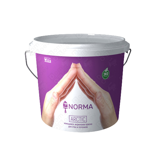 Акриловая водоэмульсионная краска для стен и потолков внутри помещения. Матовая, белая, светостойкая, моющаяся.