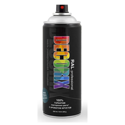 Аэрозольная эмаль Decorix RAL PROFESSIONAL (глянцевая; графитовый серый RAL 7024; 520 мл) 0138-7024 DX используется в декоративно-оформительских работах, строительстве и ремонте. Предназначена для окрашивания: древесины, пластика, металла, бетона, кирпича, керамики, стекла, картона, минеральных поверхностей. Удобна для окрашивания небольших поверхностей и труднодоступных мест. Образует гладкое глянцевое покрытие, устойчивое к выцветанию.
