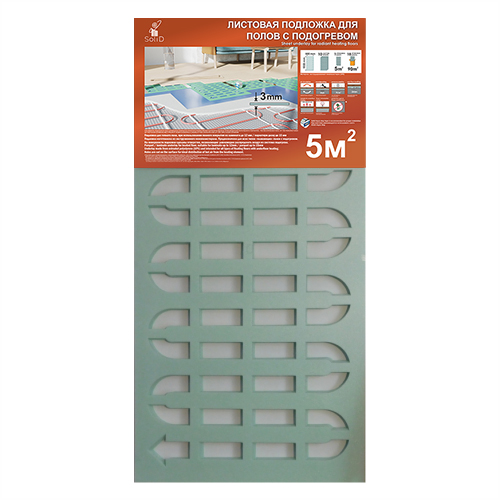 Листовая подложка Solidс вырубкой для теплого пола, 3 мм/5 м2