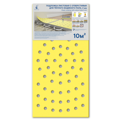 Подложка листовая с отверстиями для теплого водяного пола, 2 мм/10 м2