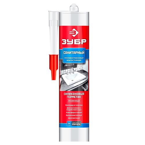 Герметик санитарный силиконовый ЗУБР 41235-2, применяется для сантехнических работ, остекления дверей, окон и других строительных конструкций, монтажа дверных коробок оконных рам, фасадные работы, монтаж и ремонт систем вентиляции. С фунгицидом против плесени. Высокоэластичный