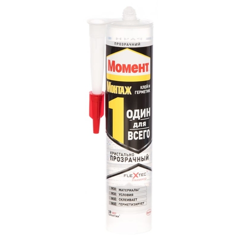 Момент Монтаж Один для Всего Мгновенный Прозрачный - совершенно прозрачный однокомпонентный, эластичный, многофункциональный конструкционный клеящий состав для внутренних и наружных работ, на основе технологии Flextec. Подходит для экстренной герметизации и склеивания даже под водой.