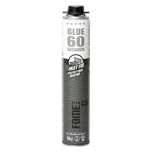 Клей-пена Fome Flex 60 sec. FAST FIX ADHESIVE FOAM, 850 мл 01-3-2-015 — это клей пена с самой быстрой первичной адгезией на рынке, без вторичного расширения, предназначенная для склеивания всех изоляционных материалов и большинства отделочных, строительных и ремонтных работ. Основные области применения: монтаж утеплительных и отделочных панелей любых размеров, кладка блоков, установка декоративных элементов, приклеивание ступеней, плинтусов, подоконников и др. Продукт обладает отличной адгезий ко многим строительным материалам: пенополистирольные изоляционные плиты (NEOPOR, EPS, XPS), полиуретановые плиты (PIR), фенолевые плиты (PF), дерево, бетон, кирпичи, керамическая и каменная плитка, металл, гипс, OSB, алюминий и др.