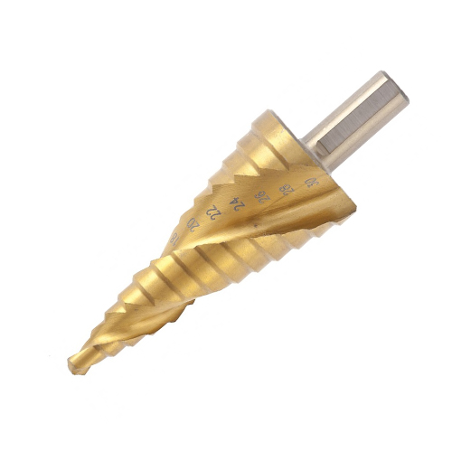 Ступенчатые cверла предназначены для сверления отверстий разных диаметров в листовых и тонкостенных (до 4 мм) изделиях из стали, цветных металлов, нержавеющей стали и пластика.Каждый следующий размер имеет плавный переход в виде ступеньки, что позволяет получать аккуратное отверстие нужного диаметра.ПРЕИМУЩЕСТВА:Высокая точность - края отверстия получаются идеально ровными.Универсальность - одно сверло заменяет целый набор традиционных спиральных сверл.Комплексный подход - при сверлении отверстия есть возможность сразу снять фаску.Не требуют дополнительной подготовки (кернения, засверливания).Легкое сверление - спиральный профиль значительно облегчает сверление металла.Износостойкость - нитридтитановое покрытие продлевает срок службы инструмента.Надежная фиксация - шести-/трехгранный хвостовик предотвращает проскальзывание сверла в патроне.