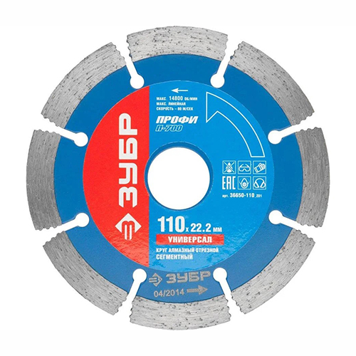 Алмазный диск отрезной ЗУБР 36650-110_z01, ПРОФИ, сегментный, сухая резка, 22,2 х 110 мм